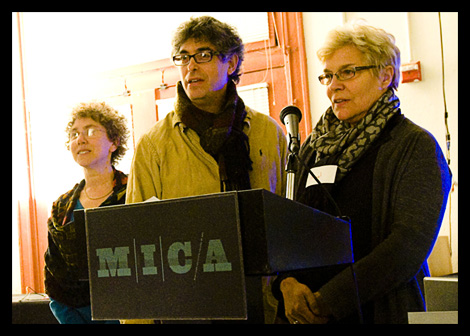 Joan Friedman, Director, Johns Hopkins University Digital Media Center, James Rouvelle, Chair of Interactive Design and Art at MICA and Annet Couwenberg, Fiber Faulty at MICA.
