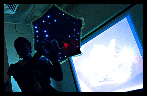 Matthew Reading’s Lighting Umbrella was devised as a fashion accessory. Envision a model strutting down the runway when suddenly the lights go out, the parasol pops open with light streaming from inside.
