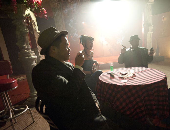 I was asked by the wardrobe stylist for the shoot, the incomparable Julie Bent, to take part in what I would soon find out was a pretty sophisticated production. On Saturday, February 12, 2011, Area 405 in Station North was wholly transformed into a 1920’s late night lounge where all the seedy stories about sex, drugs and