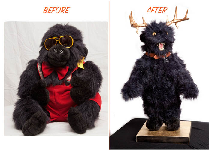 I got obsessed with stuffed animals tied to the grills of trucks, and got really into this idea of soft, fabric, public art. I began wondering what would happen when stuffed animals went feral. This is when I started making these Urban Beasts.  I would take stuffed animals and cut them up, and resew them onto a taxidermy form, and make a new animal out of it. Originally I was leaving them in parks, because I thought that was hilarious ”
