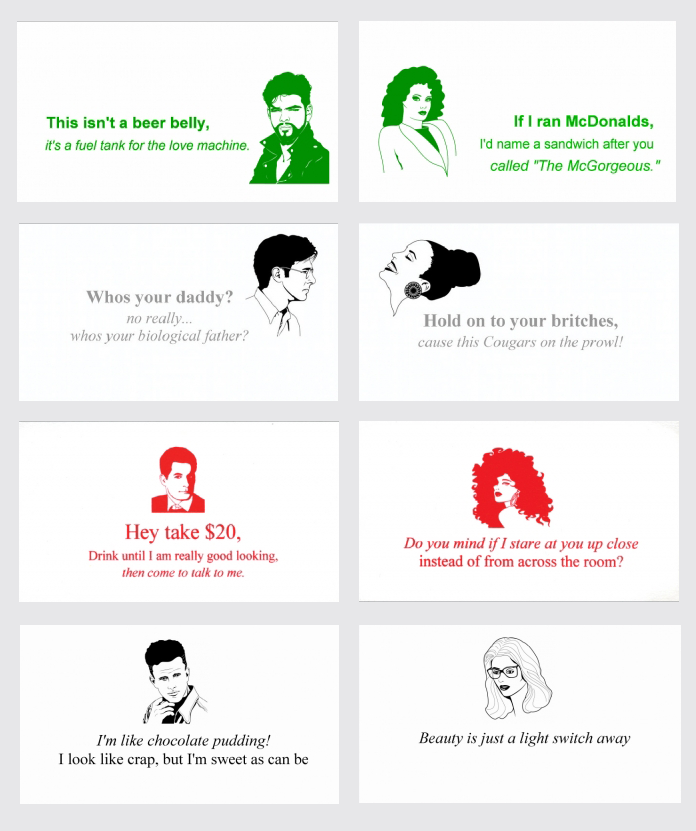 Marbury’s Pickup Card Collection was an attempt to help people out in the unforgiving world of getting a date. Designed to be left at bars and given to the person of your desire, these Pickup Cards could be used to to lighten the mood, and get him/her to say  “he gave me this cute card, he’s not evil or crazy! ”