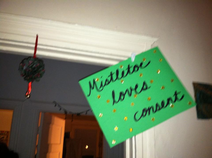 The most exciting part was that all of the attention was, and still is, generating a real conversation about consent. A festive photo posted on the Love Consent Facebook wall stating “Mistletoe Loves Consent” has been shared, liked, and viewed by hundreds of people. Users are posting questions and answers about sex and consent, and having debates about what consent is. One facebook user posted “If a gal gives you a bj, is that consent for going all the way?”. Immediately others responded with the message “no. consent to oral sex is not consent to vaginal penetration! always ask!”