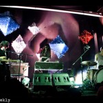 2640 is a converted Church, so before the show began I was amused to think of them as Baroque Pop, but when they started to play I could see why they’d also been described as shoegaze, and for French-born singer Victoria Legrand it was more like hairgaze as her locks were in her face the whole time. Beach House is a duo consisting of singer and keyboardist Legrand and guitarist, vocalist and Baltimore native Alex Scally on guitar. They hire a third member, in this case, drummer and seeming stunt double for Scally, Daniel Franz, for live shows. I enjoyed the show, the presentation of giant mylar diamonds hung with fishing wire above the stage, and the hypnotic trippy music; it did seem like a dream or dream pop. I may not have seen much of Legrand’s face but I could feel her passion and energy. If a photographer asked me to describe them at their next show i’d probably say they were like Mazzy Star, if Nico was the singer, but people say a lot of things.