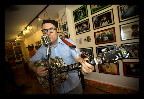 Seeing Alison Chase Radcliffe sing is at times like watching a medium conjure a spirit from another era or realm, a soulful spirit at that. Alison describes herself as a “Maker of Art, Music and Oddments.” Here we see Alison and her multi-instrumentalist husband Allen Holmes surrounded by Oddments and conducting a musical seance for the opening act at Instant Gratification. Photo and caption by Philip Laubner. |
