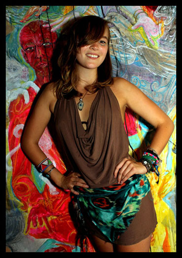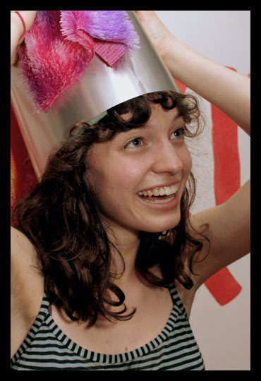 What is that atop McKenzie’s head? Ohh ,it’s Matt Lippy’s aluminum unicorn helmet. Matt has been told that it takes a real man to where that helmet …or a really joyful woman. Alpaca farmer, Evolver, and exhibiting artist McKenzie Ditter wears the helmet well.