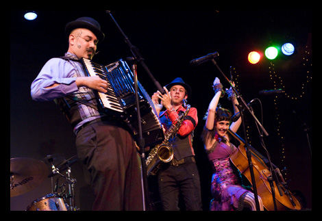 This band has restored my faith in the wonderment of live music. We’ve been bombarded by homogenized, over-produced, cog-rock and other manifestations of mass marketed melodic refuse for so long that we can truly appreciate the talents of a cabaret act with a well-refined wit, stand-out musicianship and the ability to earn applause without flaunting tits and ass every two minutes in order to keep our attention.
