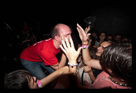 Double Dagger fan sits triumphantly atop the crowd of frenzied club goers at the Hexagon while the band played music that seems specifically engineered for the cathartic release of pent up male aggression.