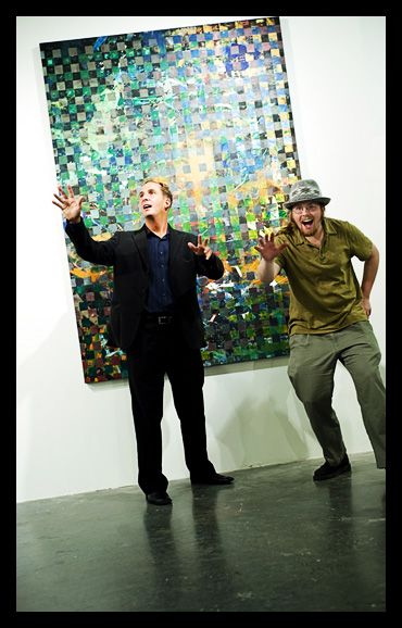 Painter Daniel Stuelpnagel and world-renowned performance artist, simply known as Brenza, demonstrate exactly how to keep it real. We captured this image of them traveling through the ether on yet another inter-dimensional escapade via custom Rubix Flux Capacitor that seems to be nothing more than an amazing painting from our limited perspective. Though they may appear to be frozen between parallel universes, I assure you that these two are quite lucid.