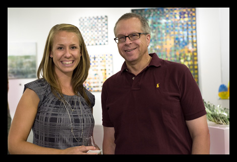 Cellist Kate Zahradnik and lawyer John Sweeney enjoying opening night at Clark Priftis Art.
