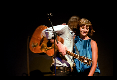 At the end of the show Caleb was called back for an encore. He said hed play more, but only if all the performers from the evening joined him, and he also insisted that they abandon the stage. As most of the performers sat on the edge of the stage, Caleb walked through the audience and we all sang a lively version of I’ll Fly Away. It was a moving and communal way to end the evening. Earlier on Caleb shared the stage with each performer individually.