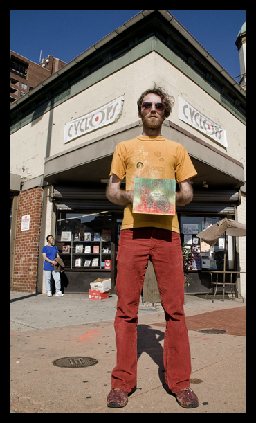 Matt Murihead set up shop on the sidewalk with an array of paintings, drawings and one of a kind silk screened clothing adorned with neon colored skulls and abstractions most pleasing to the eye. If you missed seeing his work on the streets you can still find him at his gallery, HeadSpace on the Avenue in Hampden. The grand opening is the fifth of November. I’m not sure how you’ll be able to forgive yourself if you miss it.