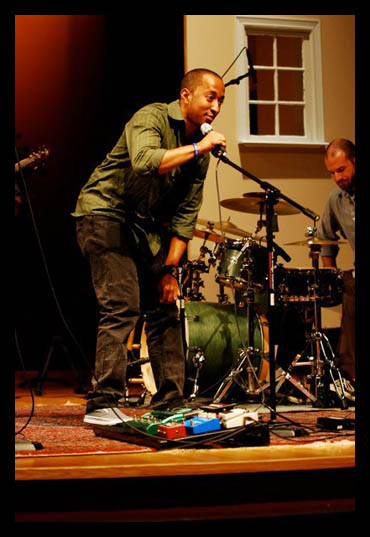 Brian and Erin Donovan began the night with a melodic cover of Amos Lee’s Freedom. Continuing in the theme of covers, Brice Dean infused the night with a unique Michael Jackson cover of Man in the Mirror. Brice’s funked out acoustic guitar rendering of the MJ classic stirred the crowd of 300 who were happily sipping away on their custom brewed espressos and cappuccinos served by the coffee caterers of Travelling Bean.