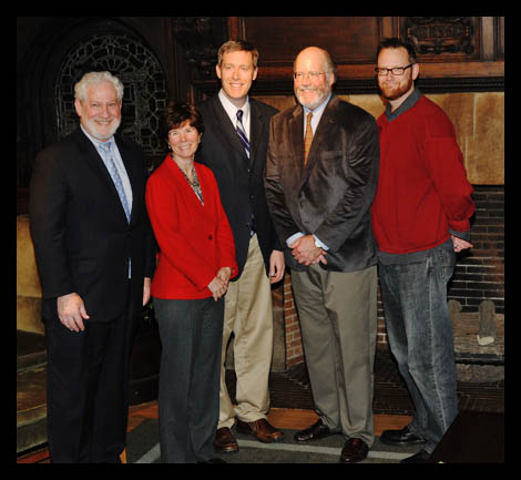 Chic Dambach with Meg Tipper author of Standing at the Edge: A Year of Days After Sudden Death, Kevin Atticks publisher at Apprentice House Press, D.R. Belz author of White Asparagus and Greg Wilhelm Founder and Executive Director of the CityLit Project. This photo was taken at Loyola University during a release party for recent books, including Exhaust the Limits, published by Loyola University’s Apprentice House Press.