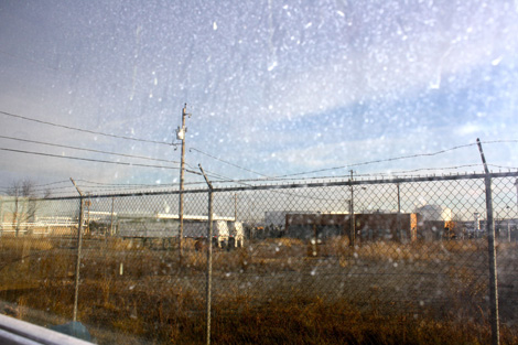 A striking, small woman in her sixties was wearing a long fur coat, gesturing out at the industrial waste-land that stretched out in an apocalyptic desolation marked by fences, empty lots, waste-tanks, refineries, and water.