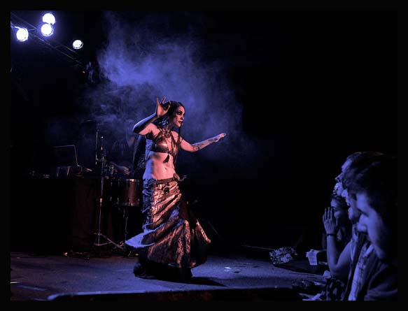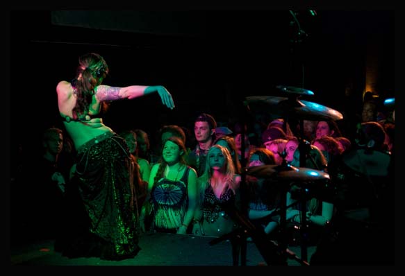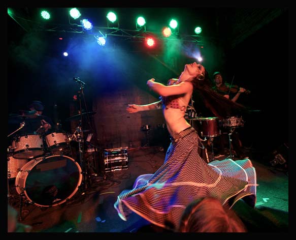 Cappel, who trained as a studio drummer at Berklee School of Music was precise, driven and relentless. Satori, who graduated from California Institute of the Arts, plays a multitude of instruments including, violin, banjo, guitar and percussion in-between mixing electronic elements into the sound. Jakes stole the spotlight over and over with her own percussion skills, but most notably with her world class belly dancing and choreography. Jakes was trained in ballet and jazz and has toured with two major belly dance troupes while producing and choreographing as well.