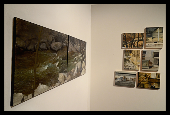 The Child Ballads show featured paintings hung in the anterior, or gallery section, of the G Spot, with music during the opening in the back hall. In contrast, The Same River Twice show features paintings, films, sculptures and found art from the river itself and the work is dispersed throughout the building. For me, the complete visual offering feels more like a contemporary art installation than a traditional gallery show.
