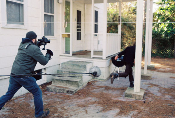 The Dish and the Spoon was one of several films shot with the Canon 7D or 5D that screened this year. These are DSLR cameras adapted to shoot motion pictures and which yield terrific images, even when projected on the largest screens. (I saw Dish & Spoon at MICA, on the big–ass screen). This doesn’t make movies a point-and-shoot proposition: it takes enormous talent and skill to shoot a film, and Cinematographer Mark Schwartzbard applied plenty of both in his excellent work on Dish & Spoon. Mr. Schwartzbard is a veteran of the BORAT, RELIGUOUS, and BRUNO camera teams. When Dish & Spoon went into production in 2009, the Canon7D wasn’t quite the household tool it is now. Schwartzbard had planned too use an EX3 as the “A” camera, but soon the 7D displaced the more traditional video capture tool. Mr. Schwartzbard found his director to be more committed than most to scheduling exteriors for times of optimal lighting. Attractive Interior work was accomplished with a bare minimum lighting package, including 1’ X 1’ LED panels.