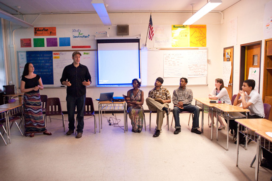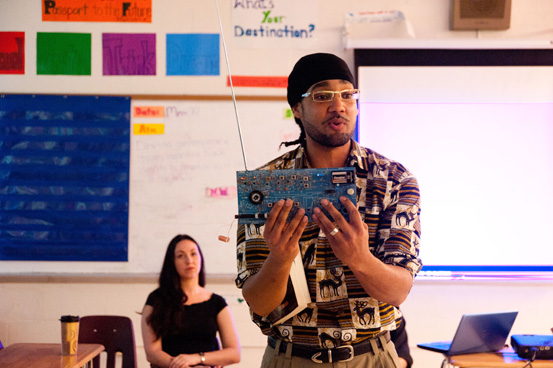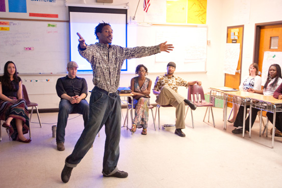 Co-director of the Black Male Identity Project, Fanon Hill, posed the question, “Who has the right to define your identity?” He spoke to the kids about the role of art in the African American community as a collective experience and the power of positive identity. He embodied the project’s mission by personifying positivity and enthusiasm with confidence and purpose. If you’re a teacher looking for someone to engage and encourage your students, you’ve found your man.