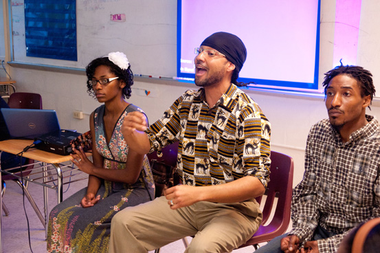 Poet Allen Wilson led the class through a series of verses that was anchored in everyone joining in on the phrase “in the heart of the city” as it was paired with verses that spoke to the experience day to day urban living.