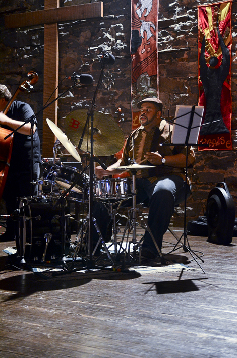 2640 is a non-commercial, cooperatively managed space for radical politics and grassroots culture. The converted church has two halls. One in the open body of the church for large concerts, and the other, a Chapel. On Sunday night we were in the more intimate, and in my opinion, acoustically superior chapel. It was a hot night, but not too hot. The scene, reverential. The music was intellectual, but still direct and primal. “We live in a close society, there are more ways to interact than ever before. That means there’s more ways to be misunderstood, so it’s better to be direct,” – Lafayette Gilchrist.