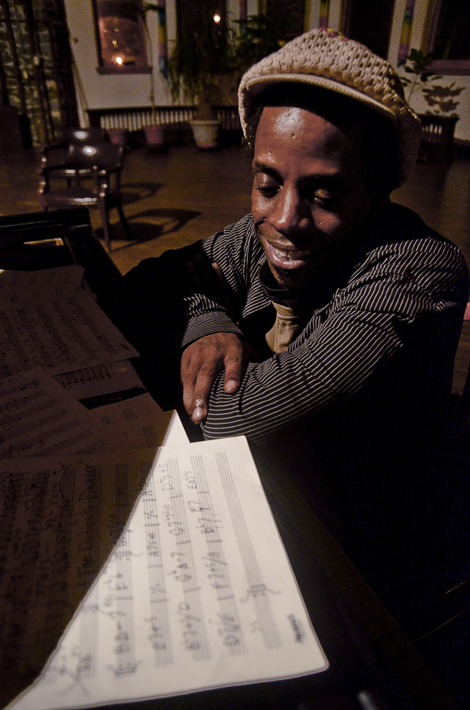 When in the presence of good jazz I lose the ability to sit still, my limbs dance as if independently, and I often smile in disbelief at the musical conversations. Basically, I appear insane to anyone other than a fellow fan. On Sunday night I was asked to cover Lafayette Gilchrist’s band Inside Out at 2640. The ferocity of the band’s rhythmic attack induced a similar state of insanity in members of the audience. A man with dreads stood in the back near a window playing air drums and flailing his arms as if he was translating elemental jazz to the sky. Another older man sat smiling in disbelief and rocked to the syncopation. He seemed gratefully possessed.