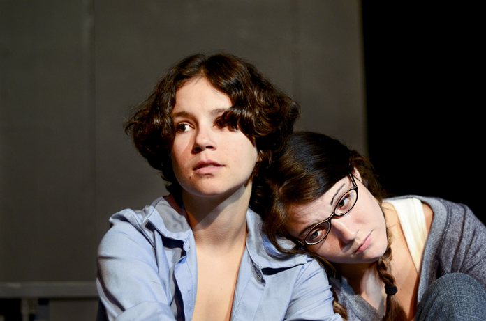Curious daughter, Mandy, played by Julia Pickens and her friend Jen, Erin Boots.