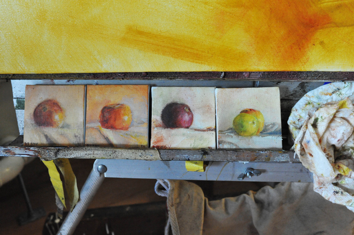 “I over work things to a point, sometimes, where I don’t like them and it’s really sad because at one point it was such a great painting and this is one of them. I had my father cut it without giving him instruction and made a show out of it. I sold a few pieces.”