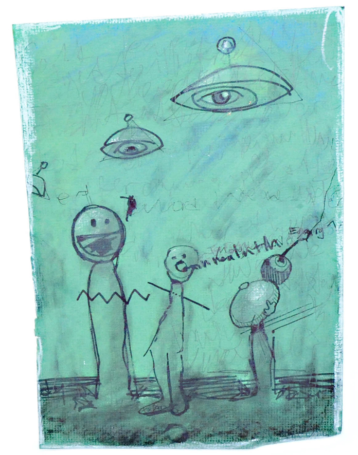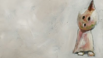 “I try really hard not to make it dark and I think that makes it even darker. It is scary sometimes and when I’m painting these things, occasionally they scare the fuck out of me which is even stranger. I’ll obsess over it at night. It just means something personal that’s scary to me and I don’t know why because I never plan my paintings. Sometimes I’ll try to plan not to be scary I’ll paint a happy face. I’ve gone as far as painting as many happy faces as I could and people tell me that’s my creepiest piece.”