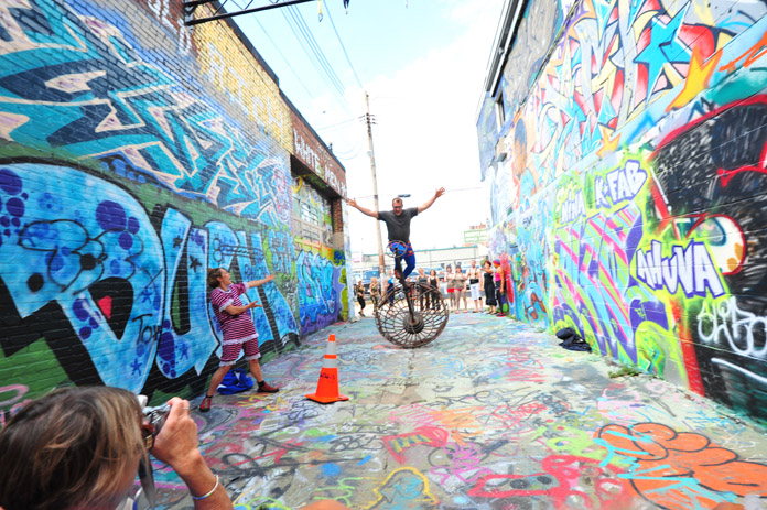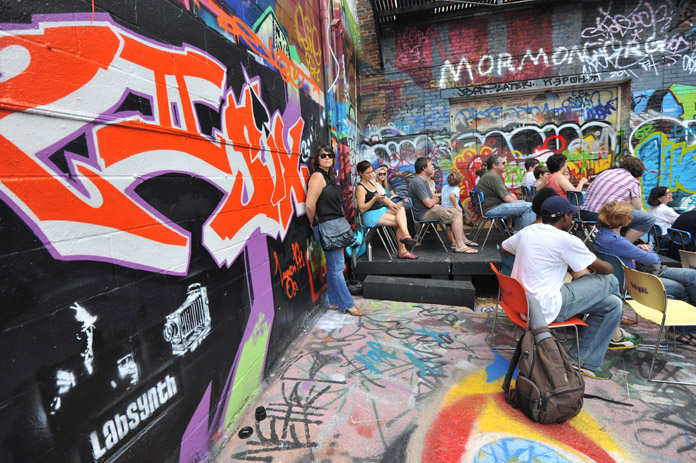 Graffiti Alley in Station North is a veritable gallery of work by some of Baltimore’s less than conventional visual artists. There’s an explosion of color and profusion of inventive urban design waiting to meet you once you enter the corridors behind Load of Fun Studios. It’s absolutely stunning and one of the most unique art spaces in the city. Here lies the perfect setting for an annual festival that typifies the individuality and idiosyncrasy that has come to define the Baltimore art scene.