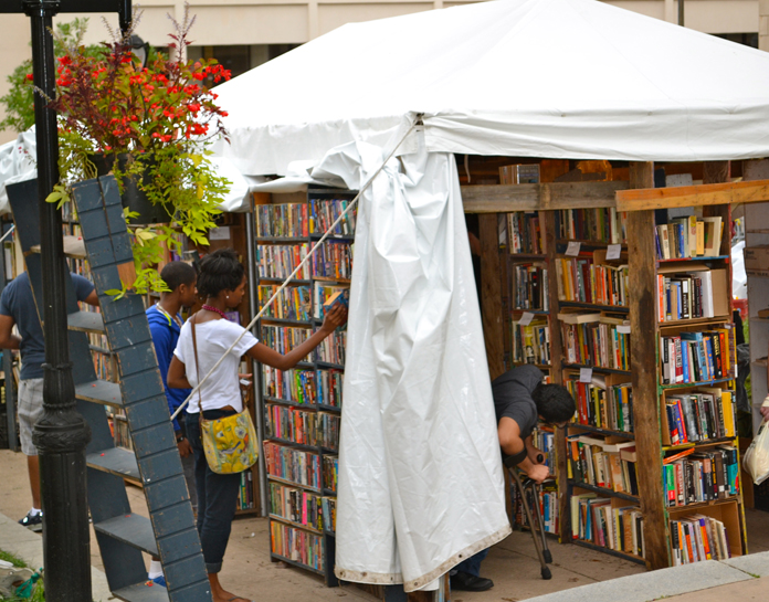 It’s difficult to say which is more potent. The brightly-colored balloons, the smell of freshly powdered funnel cake and overpriced veggie lo mein, unexpected bubbles, the deliciously disconcerting stimuli produced by people, music, and alcohol, or the novelty of hearing a celebrated author lecture on a sidewalk. What is certain is that there is something about festivals (well, it’s probably the alcohol), have tendency to create a sense of hey, let’s be friends, just because. At the Baltimore Book Fest, held in Mount Vernon last weekend, that phenomena was not only felt, but was accentuated by the fact that what was being celebrated—books, in paper form—have been met with pretty stiff competition as of late. The festival itself, and everyone present, gave weight to the idea that books are still important and are worth being celebrated.
