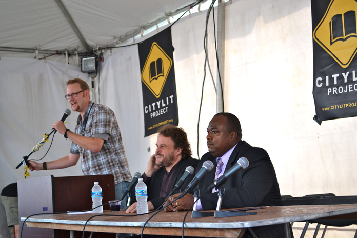 It wouldn’t really be accurate to call what went on in the CityLit tent on Saturday night a series of book readings. Yes, books were read, but “Not from these parts: Readings by Non-Hometown Boys,” hosted by Aaron Henkin, co-host of WYPR’s “The Signal,” was really equal parts live radio-show and folk concert. Spectators were lured in by Henkin’s resonant ringmaster-esque voice and the promise of free beer, but stayed to hear the infectious tunes of the dapperly-dressed Barnyard Sharks, a six-man band featuring the likes of Henkin on drums, Baynard Woods on bass violin, and Jason Reed (named best folk musician by City Paper).