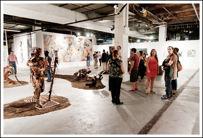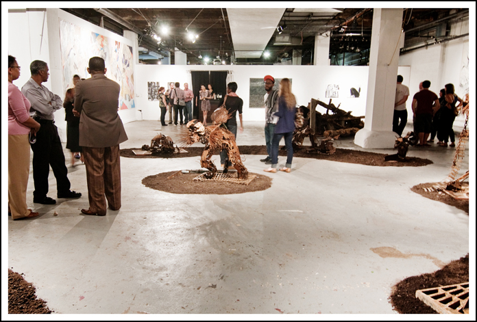 If you’re guessing that the following paragraphs describing this exhibit come from a press release you’re probably right. We’re not entirely sure of their origin. These beautiful pictures depicting the current exhibit at Subbasement Studios showed up on our doorstop unaccompanied so we decided to take them in. The description of the exhibit soon followed. The best possible outcome for publishing said photos and text is that you might be inspired to venture from where you’re reading this to the gallery to experience the work. You then would immediately fall in love with one or several pieces and make a purchase. In turn that would make an artist very happy and they then would be inspired to create new work. One of those pieces would end up in a gallery where influential decision makers, who make big gears turn, go to hob nob and buy art that the rest of us can’t afford. It’s there, at the opening reception, that one particular decision maker happens upon a piece painted by the artist who sold you the piece at Subbasement. As a matter of fact, the piece was inspired or funded, in part, by your patronage. This particular important so and so is struck with a profound realization, he or she is immediately inspired to rethink his or her particular worldview. He or she spends the next day on the phone righting all the wrongs perpetrated on the world since he or she gained influence and the exercises results in a chain reaction that brings peace and happiness to the entire globe. Who would we have to thank for world peace? Besides the Dali Lama, Mother Theresa, Chic Dambach, and Bono? You. That’s who.