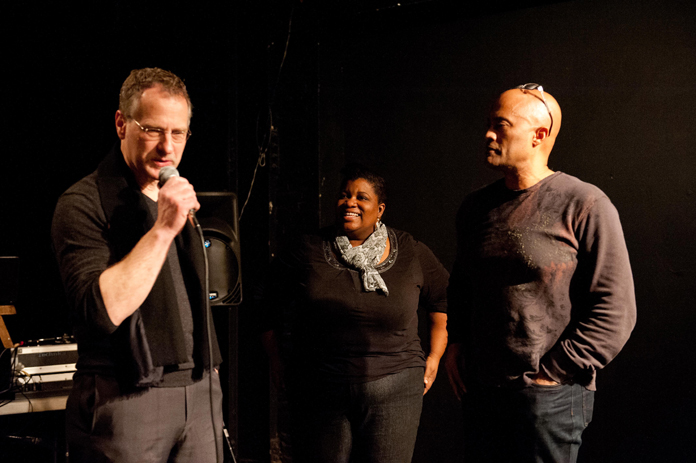 Andre Robinson of Load of Fun Arts produced the event and brought together local notables such as comedian Jason Weems of Last Comic Standing Finalist fame and Joe Zucker/Zucker Studios illustrator of the original Hobbit and other fantasy novels. The UFO2012-Plastic Army show currently in the LOF Gallery provided an appropriately playful setting for what was to follow.  The evening was punctuated by food libations from Station North Arts Café and delectable beats from DJ Just K.