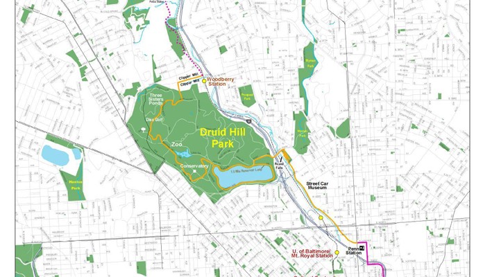 The dedicated path will connect the Gwynns Falls Trail at the Inner Harbor to the Jones Falls Trail at Penn Station, separating street traffic by utilizing bike lanes around the Inner Harbor and wide sidewalks along the Jones Falls corridor.