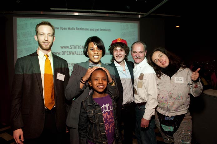Ben Stone (Station North), Mayor Stephanie Rawlings-Blake and Daughter, Gaia, Bill Gilmore (BOPA), and Maya Hayuk