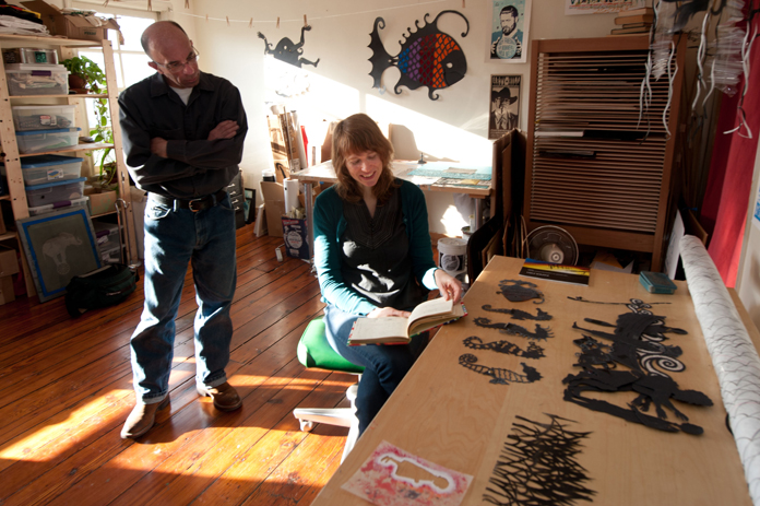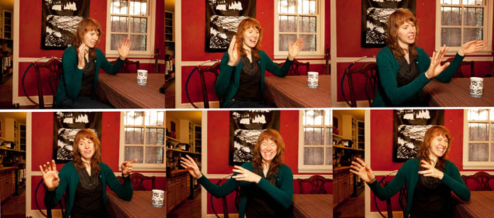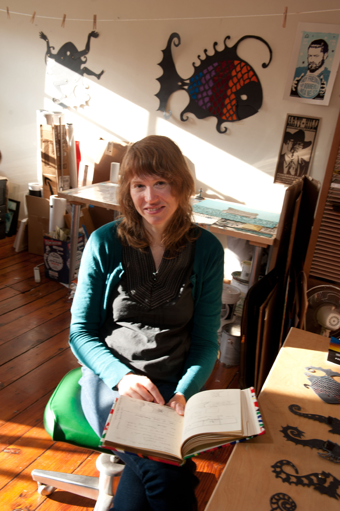 KATHY FAHEY (KF):I tell them I’m an artist. Then I have to explain all the different things that I juggle being an artist. I do the shadow puppets; I do design work, CD covers and music posters. I teach workshops sometimes, and I teach special-ed art classes, so I have all these different things going and it’s difficult and funny trying to explain it to people.