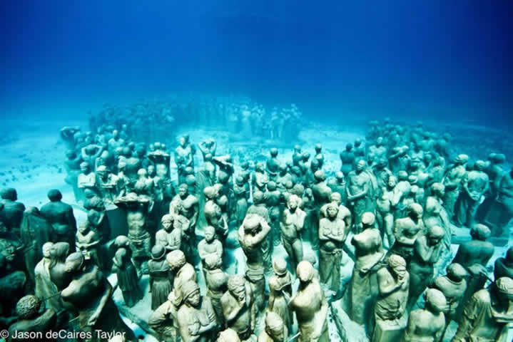 Jason deCaires Taylor has gained significant interest and recognition for his unique work, with articles in over 1000 publications around the world, including National Geographic, Vogue, USA Today, Daily Telegraph and The Guardian. His sculptures have aired on television features and documentaries with CNN, Discovery Channel, BBC, Metropolis Art Lounge and Thalassa. His international reputation was established in May 2006, when he created the world’s first underwater sculpture park in Grenada, West Indies, leading to both private and public commissions. Taylor is currently founder and Artistic Director of the Museo Subacuático de Arte (MUSA) in Cancun, Mexico.