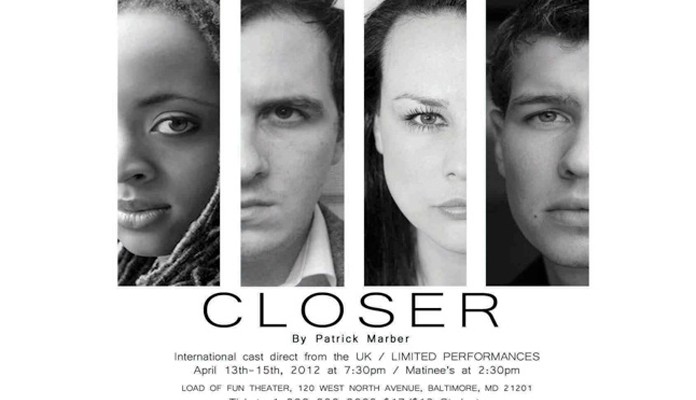 Closer is playing April 13th, 14th and 15th with 7:30pm performances each evening and weekend matinees at 2:30pm. Load of Fun Theater, 120 West North Avenue. Tickets $17/Students $12. VIP tickets also available on April 13 for $40 which will include an opening night reception with the cast and sponsors. For tickets please call 1-800-838-3006 or visit www.brownpapertickets.com/event/230708