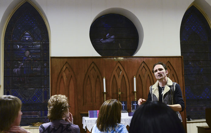Last week was Jonathan Talat Phillips’ second visit to Saint Mark’s Church on 36th Street in Hampden hosted by Breathe Books. Talat first visited breathe three years ago with writers, Daniel Pinchbeck and Ken Jordan when they were on their Toward 2012 anthology book tour. The aura awakenings that Talat first spoke about with Daniel and Ken an icy night in February ’09 had since been developed into his first novel, a memoir called The Electric Jesus: The Healing Journey of a Contemporary Gnostic.