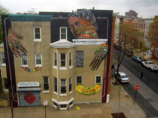 Photo by Theresa Keil Jeff Dicken, Executive Director, Baltimore Green Currency Association, with winner artist Richard Winchel. On a windy…