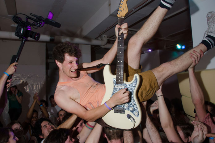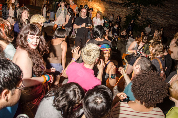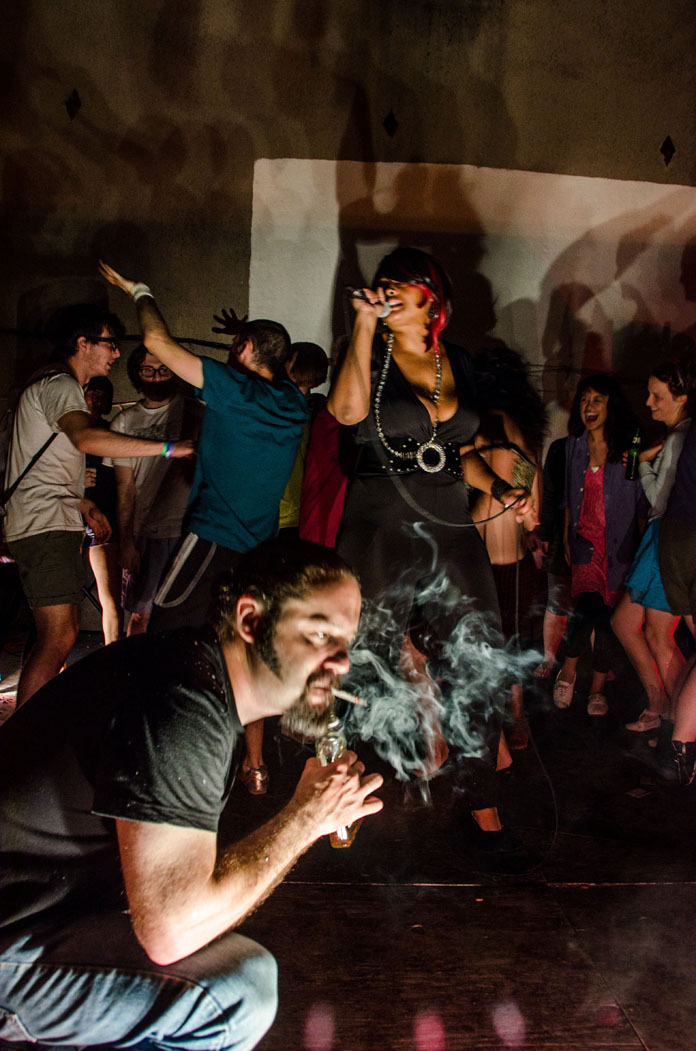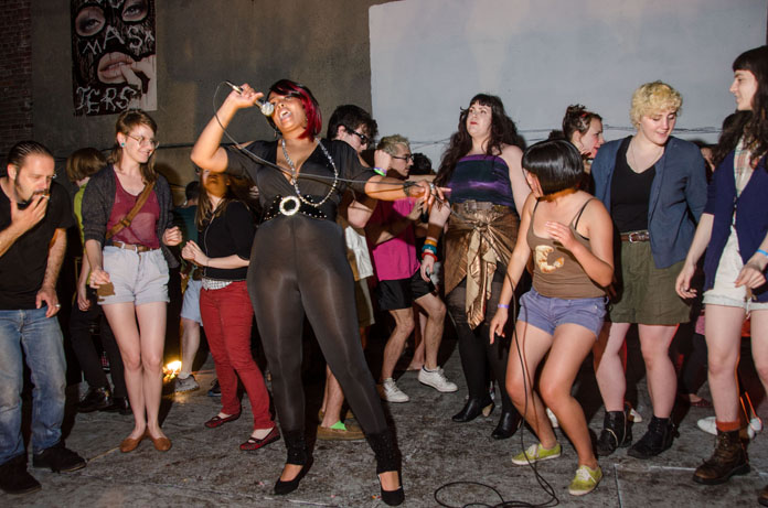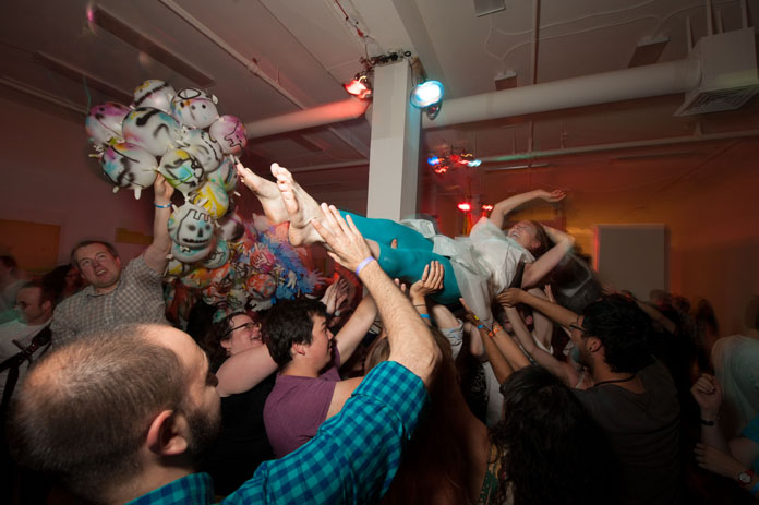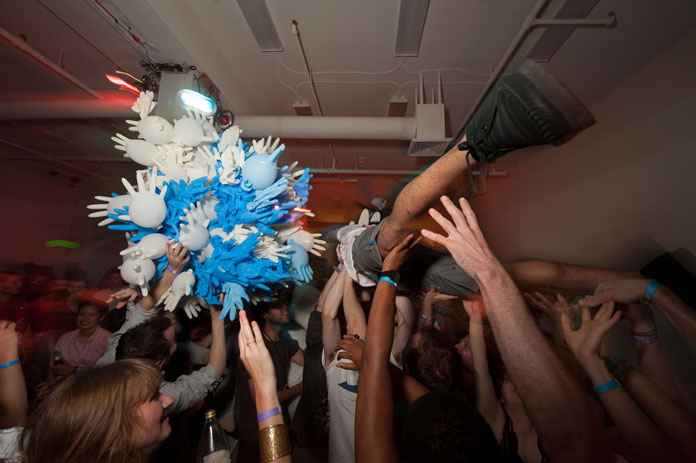 Pushed norms are what keep the art world so interesting. The 9th Annual Transmodern Festival helped to make sure that innovative artists who stray from tradition actually get the credit they deserve. From Thursday, May 17th to Sunday, May 20th, Baltimore got their radical on at a handful of venues ( The Current Space, Alley-OooooooPs!, D:center @ MAP, the 14Kt Cabaret, and the Pedestrian Service Exquisite @ Baltimore’s Farmers Market and Bazaar) as colorful and as the shows and performances they hosted. Highlights of the long weekend included art installations and video projections on crowd surfing, the beloved sport of many DIY-loving Baltimore folks. The work on crowd surfing was curated by Katie Kehoe and included performance by local punk rawk duo Weekends (Adam Lempel and Brendan Sullivan), who tore up D:center from the throne of the hands of their audience. The space also hosted the Effervescent Collective, whose piece The Peanut Gallery ran for a half an hour on both Friday and Saturday. Transmodern, as is obvious from the following photo essay, exposed the wonderful weirdness of Baltimore art.