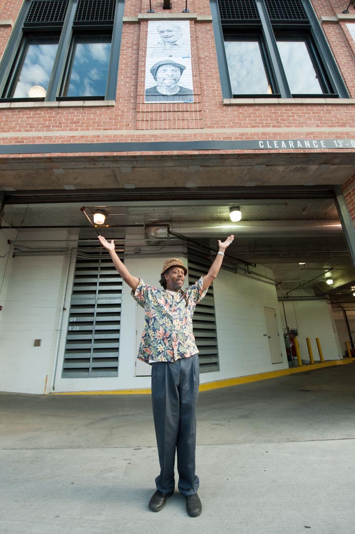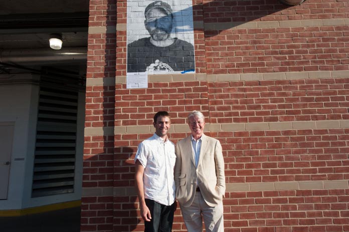 Baltimore’s installation for Inside Out was orchestrated by Public Art Guru Scott Burkholder of the Baltimore Love Project. In March 2011, he saw a live broadcast of JR’s TED Talk in Long Beach, CA, and the idea immediately resonated with him. A fellow Baltimorean present at the live talk also thought Burkholder would be a great fit, and sent an e-mail suggesting he take part. Inspired, Burkholder immediately uploaded his own portrait to the Inside Out Website, and expressed interest in coordinating a group effort to realize JR’s vision in Baltimore.