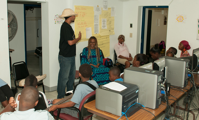 The camp, which ends tomorrow, is structured roughly as such: the kids show up at 9 a.m. Monday-Thursday to learn about artists and professionals in Baltimore. Often they practice crafts or music, and often they are visited by the artists themselves. It doesn’t hurt that Daya and Hill are well-connected: “If we have one person who wants to be a model, I call up my friend who’s a model and she comes in,” says Hill. Another camper said she wanted to be a journalist. Hill gave a call to internationally renowned photojournalist J.D. Howard.