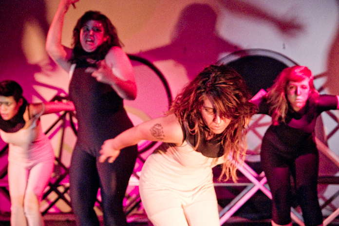 The work premiered at the Penthouse Gallery on June 29th, showcasing a wholly unconventional type of grace. Dancers writhed and shook, sometimes in perfect unison and sometimes in a more abstract, improvised manner. Strange props were twirled. Shadows on the stage were integral, and seemed to become dancers themselves. Varying styles and tempos were explored, and centers of gravity rose and fell to match the hilly soundscape.