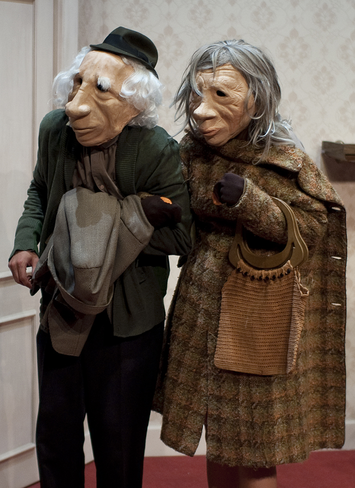 Weeks later, Spanish actors Jose Dault and Garbiñe Insausti began writing. They would create a play about the loss of memory, the loss of self, and the struggle of a husband and wife to rediscover their love as time works against them. The result was André and Dorine. The play is performed by three masked actors: Dault, Insausti, and Eduardo Cárcamo (who comprise the company Kulunka Teatro). There are no words and only minimal musical accompaniment, and yet the play is immediate and alive. For the last two years, the company has been touring the play around the world, and this Friday to Sunday it comes to the Baltimore Theatre Project.