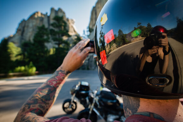 Pictured here photographing Mt. Rushmore, John Shea and Piper Watson rode 10,000 miles across the US from their home in Station North, Baltimore to the furthest reaches of the lower 48 and back again (amongst other things) to see various tool lending libraries and how they support their communities.