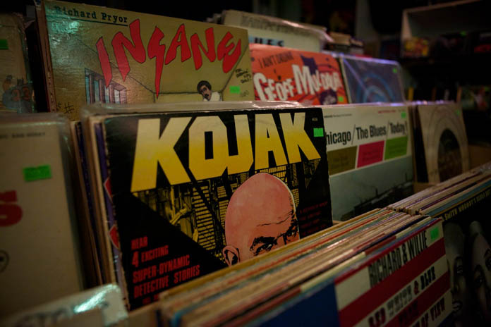 Moore’s love of vinyl is apparent when you step into his shop on Alceanna Street. Upon walking down the stairs that lead you to the musty basement storefront, the sound of a pricing gun can barely be heard over the music, as Moore prices his latest acquisitions and places them on the racks.