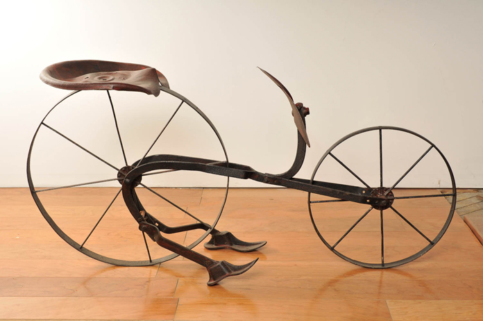 “The timeworn quality of the old farm implements that I have been collecting helped form the vision for my work,” says Gross. “The objects are very sculptural in themselves. I tried to preserve the integrity of these artifacts while assembling them into forms that appeal to me”