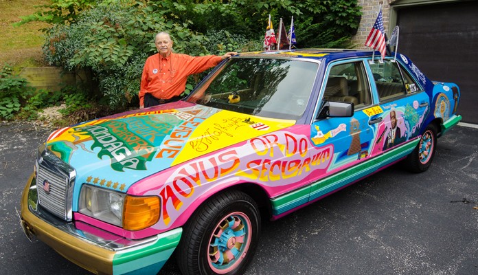 I first encountered Dr. Bob at this year’s Artscape. He was sitting in the middle of Charles Street, next to his “We The People” Biodiesel Artcar. The car, the only biodiesel Artcar in the state of Maryland, is a mural on wheels, filled with symbols and knowledge hidden just below the surface.