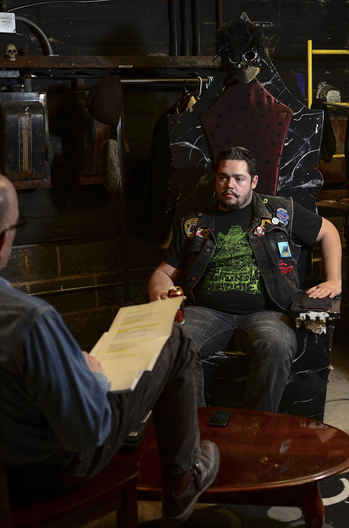 The biggest challenge was giving the music a personality based on the time period of the play. Everything is written in 3/4 time, waltz time for this show. We’ve got polyrhythm and some weird stuff. We’ve been trying some decadent, baroque sort of, almost classical, but keeping it in metal. We were shooting for death metal and ended up with something a bit lighter we call murder metal.